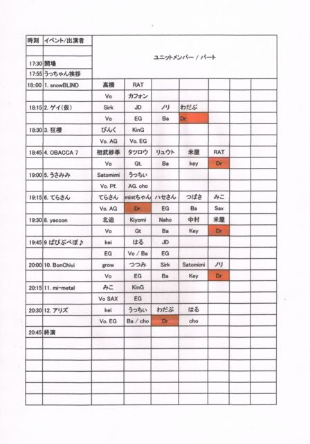 ¤³¤ó¤Ð¤ó¤ï¡¢kei@¼çºÅ¤Ç¤¹¡£ µþÅÔ»Ô¤«¤é¤Î¼«½ÍÍ×ÀÁ¤Ëȼ¤¤¡¢Ï²»Æ²¤µ¤ó¤ÎÊÄŹ»þ´Ö¤¬21:00¤ËÊѹ¹¤È¤Ê¤ê¤Þ¤·¤¿¡£ ¤³¤ì¤Ëȼ¤¤¡¢¥¿¥¤¥à¥¹¥±¥¸¥å¡¼¥ë¤ÎÊѹ¹¤ò;µ·¤Ê¤¯¤µ¤ì¤¿¤Î¤Ç¡¢ ¡´ðËÜŪ¤Ë30ʬÁ°Åݤ· ⓶¥Þ¥ì¤µ¤ó¤Î¤´ÅԹ礬¤Ä¤«¤Ê¤¯¤Ê¤ê¡¢¥Þ¥ì¤µ¤óÏȤ¬¾ÃÌÇ¡¢¸Î¤Ëyaccoon¤µ¤ó°Ê¹ß¤Ï45ʬÁ°Åݤ· ¤È¤¤¤¦·Á¤Î»ÃÄ꥿¥¤¥à¥¹¥±¥¸¥å¡¼¥ë¤òºîÀ®¤·¤Æ¤ß¤Þ¤·¤¿¡£ ¶ñÂÎŪ¤Ê¤´½Ð±é»þ¹ï¤Ê¤É¤Ï¡¢ÅºÉդβèÁü¤ò¤´³Îǧ¤¯¤À¤µ¤¤¡£ = Êѹ¹³ÎÄê = Êѹ¹¥¹¥±¥¸¥å¡¼¥ë·ÇºÜ¸å24»þ´Ö¤¬·Ð²á¤·¤Þ¤·¤¿¤¬¡¢ÆÃ¤Ë¤´ÅԹ礬°¤¤¤È¤¤¤¦¤´Ï¢Íí¤ò夫¤Ê¤«¤Ã¤¿¤Î¤Ç¡¢Àè¤ÎÄ̤ê¤Î¥¹