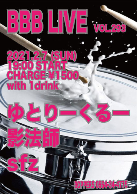 BBB LIVE 293 2021.2.7 (SUN) 19:00 START CHARGE \1500 with 1drink ゆとりーくるー 影法師 sfz