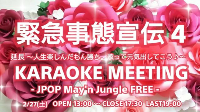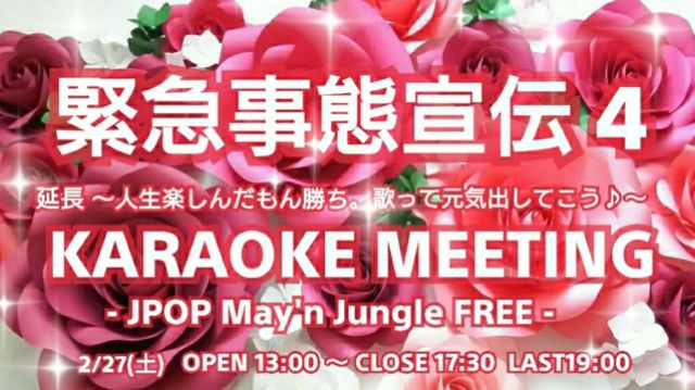 池袋ーKARAOKE MEETINGーValentine's Day JPOPメインでジャンルFREE 緊急事態宣言4〜延長ver. 〜人生楽しんだもん勝ち。歌って元気出してこう♪〜 −−−−−−−−−−−−−−− ★限定会費★ 男女一律1600円 ★日時★ 2月27日(土)13時-17時半 ※17時半で一旦中締め。19時まで居残り可 ★場所★ カラオケマック 池袋東口店 東京都豊島区東池袋1-41-4 池袋東急ビル 4F ★ソフトドリンク飲み放題 ★ソフトクリーム食べ放題 ★機種全てLive DAM Stadium ★4部屋予約済 ★お部屋シャッフルあり ※多少被りも出ます。