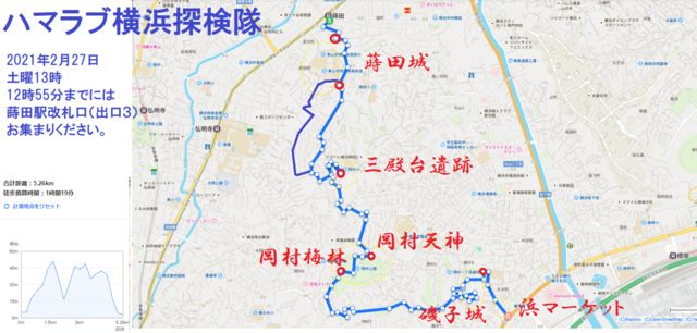 横浜にもかつてお城があった… 今回は南区から磯子区を隔てる丘をいくつか超えて海を目指す旅を企画します。 その間に吉良家の居城【蒔田城】と磯子の語源になった一族の住む【磯子城】があります。 また、鎌倉戦国時代の名残以外に【三殿台遺跡】という縄文時代の遺跡も見に行きます。 そして、江戸時代から賑わいを見せた【色天神こと岡村天神】を参道より進み(ゆずの足跡も)、横浜有数の梅林の名所も巡ります。 最後は昭和の古き名残を感じる【浜マーケット】でお総菜を買って帰りましょう(ガチコログランプリ金賞のお店のコロッケがおスス