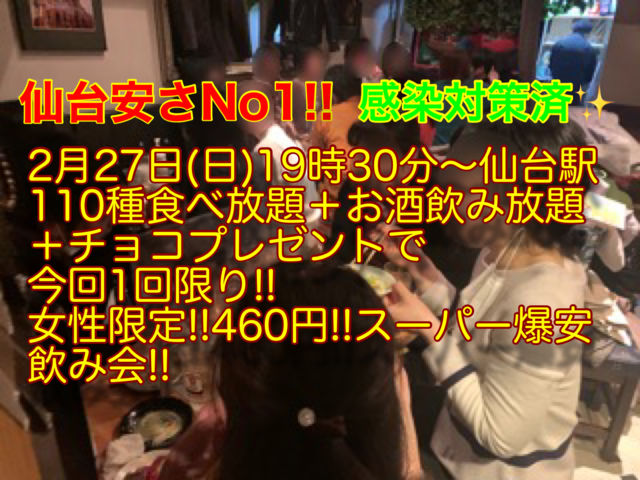 【新型コロナウィルス対策、最強モードにて対策中!!全国で一番コロナ対策最強のサークルです!!】 ※相当、徹底して対策をしております。もう、これ以上できないくらい感染症対策とってます!! ◎当サークルでは、「仙台のサークル唯一!!」定期的に幹事のPCR検査を実施しています!! 2月8日(月)に一斉PCR検査を実施しました →全員「陰性」でした Twitter「sendaimachikon」でご確認ください ◎なお、「仙台のサークル唯一!!」飛沫拡散防止シートを設置しています。飲み会中の会話による、飛沫を徹底的にブロックします!! もちろん、下部の基本