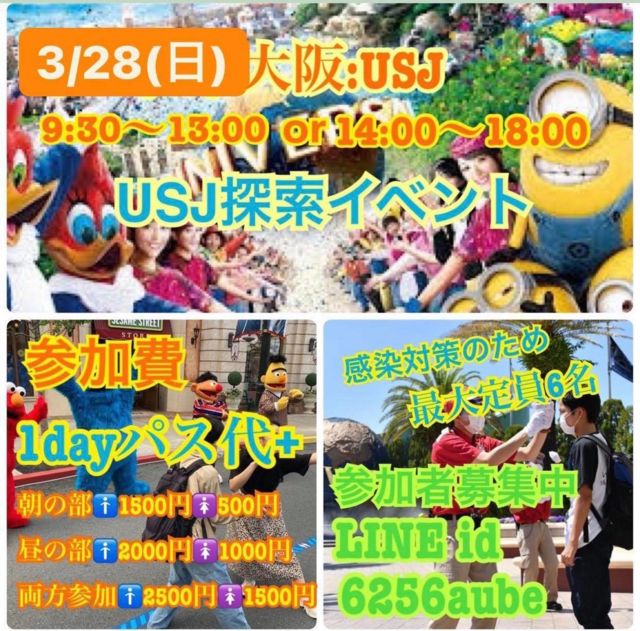 ´ÉÍý¿ÍÍÍ¡¢µ®½Å¤Ê¥¹¥Ú¡¼¥¹¼ºÎ餷¤Þ¤¹¡£ 3/28(Æü)¤Ë¾¯¿Í¿ôÀ©¤Ç¥æ¥Ë¥Ð¡¼¥µ¥ë¥¹¥¿¥¸¥ª¥¸¥ã¥Ñ¥óõº÷¥¤¥Ù¥ó¥È¤ò³«ºÅÃפ·¤Þ¤¹¢ö ¡Ábright¡Á3·î28Æü(Æü)Ìî³°´ë²èexclamation ¡ß2¥æ¥Ë¥Ð¡¼¥µ¥ë¥¹¥¿¥¸¥ª¥¸¥ã¥Ñ¥óõº÷¸òή²ñ¥¤¥Ù¥ó¥È º£²ó¤ÎÉñÂæ¤ÏÂçºå¤ÇÍ̾¤Ê¥Æ¡¼¥Þ¥Ñ¡¼¥¯¡¢USJ¤¬ÉñÂæ¤Ô¤«¤Ô¤«¡Ê¿·¤·¤¤¡Ë ¡Ábright¡ÁÆÃÊÌ´ë²è¤È¤·¤ÆUSJ¸òή¥¤¥Ù¥ó¥È¤ò³«ºÅÃפ·¤Þ¤¹exclamation ¡ß2(^¢þ^*) º£²ó¤Ï¾¯¿Í¿ô¤Ç¥°¥ë¡¼¥×¤ÇUSJ¤ò¼þ¤ê¡¢¥¢¥È¥é¥¯¥·¥ç¥ó¤ä¥Ñ¥ì¡¼¥É´Ñ¾Þ¡¢Ç㤤ʪ¤Ê¤É¤·¤Ê¤¬¤é¸òή¤·¤Æ¤¤¤¤Þ¤¹¢ö ¤Þ¤¿³«ºÅ»þ´ÖÂÓ¤ÏÄ«¤ÎÉô¡¢Ãë¤ÎÉô¤È2¼ïÎà»þ´ÖÂÓ¤òʬ