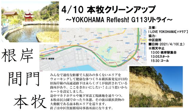 4/10土曜に中区本牧を舞台にクリーンアップイベントを開催予定。