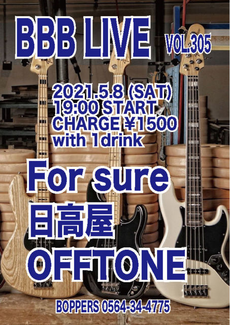 BBB LIVE 305 2021.5.8 (SAT) 19:00 START CHARGE \1500 with 1drink For sure 日高屋 OFFTONE
