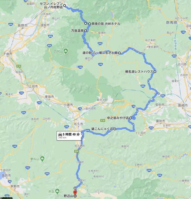 5/10 11 12 (月曜から水曜) 予約のみ先行して各自でお願いします。キャンセルできますので! 集合から解散までランドマーク作りました。(以下文書で) 誰がどの区間を誰が先導するかは当日区間ごとに指示します(笑”) 道によるので! Googleマップからひらってますので携帯に入れておいてください。 1人がずっと先導するのはかなり疲れるから(僕、後ろからついてく〜は無しね!!) 月曜 ●セブン-イレブン 山ノ内佐野店 0269338701 集合:14時 志賀ハイランドホテル アネックス 0269342711 一時停止 中日新聞 志賀高原