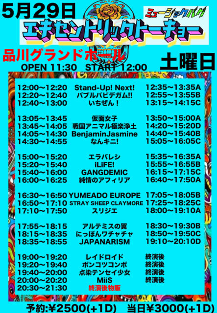 ¡Ö¥¨¥¥»¥ó¥È¥ê¥Ã¥¯¥È¡¼¥¥ç¡¼¡× Æü»þ¡§05/29(ÅÚ) ³«¾ì11:30 / ³«±é12:00 ²ñ¾ì¡§ÉÊÀ¥é¥ó¥É¥Û¡¼¥ë ÎÁ¶â¡§Í½Ìó2500±ß/ÅöÆü3000±ß (DÊÌ) ¥Á¥±¥Ã¥È¡§https://t.livepocket.jp/e/bormh ½Ð±é¡§²¾Ì̽÷»Ò/¥¹¥ê¥¸¥¨/½ã¾ð¤Î¥¢¥Õ¥£¥ê¥¢/BenjaminJasmine/¤Ê¤ó¥¥Ë¡ª/Àï¹ñ¥¢¥Ë¥Þ¥ë¶Ë³Ú¾ôÅÚ/¥Ð¥Ö¥ë¥Ð¥Ó¥Ç¥¬¥à!!/iLiFE!/JAPANARISM/¤Ë¤Ã¤Ý¤ó¥ï¥Á¥ã¥Á¥ã/¤¤¤Á¤¼¤ó¡ª/STRAY SHEEP CLAYMORE/¥¨¥é¥Ð¥ì¥·/Stand-Up! Next!/¥ì¥¤¥É¥í¥¤¥É/GANGDEMIC/ÅÀÀ÷¥Æ¥ó¥»¥¤¾¯½÷/YUMEADO EUROPE/¥¢¥ë¥Æ¥ß¥¹¤ÎÍã/¥Ý¥ó¥³¥Ä¥³¥ó¥Ý/MiiS