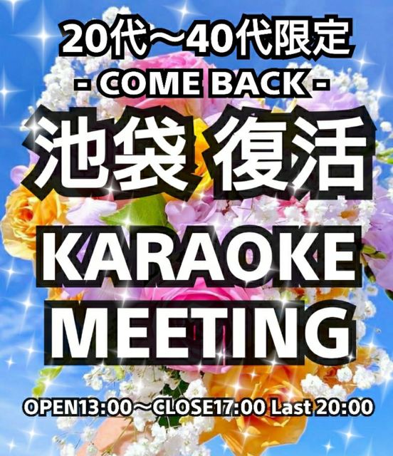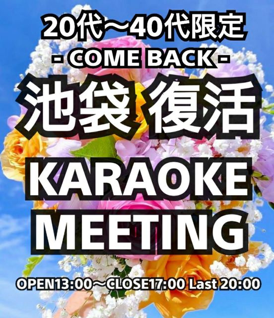 ÃÓÂÞ¡¼KARAOKE MEETING ¡¼ JPOP¥á¥¤¥ó¤Ç¥¸¥ã¥ó¥ëFREE 20Âå¡Á40Âå¸ÂÄê ¡Á¿ÍÀ¸³Ú¤·¤ó¤À¤â¤ó¾¡¤Á¡£²Î¤Ã¤Æ¸µµ¤½Ð¤·¤Æ¤³¤¦¢ö¡Á ¡Ý¡Ý¡Ý¡Ý¡Ý¡Ý¡Ý¡Ý¡Ý¡Ý¡Ý¡Ý¡Ý¡Ý¡Ý ¡ú²ñÈñ¡ú ÃËÀ2000±ß½÷À1500±ß ¢¨½÷À¸ÂÄ껲²Ã¥×¥ì¥¼¥ó¥È¤¢¤ê ¢¨Ç¯Âå¤ò¸ÂÄꤷ¤Æ¤Þ¤¹¤¬¡¢Ç¯Îð³ÎǧÅù¤ÏÆÃ¤ËÃפ·¤Þ¤»¤ó¤Î¤Ç¡¢¤´°Â¿´²¼¤µ¤¤¡£ ¡úͧã³ä°ú¤¢¤ê¡ú ½é»²²Ã¤Îͧ¿Í¤È°ì½ï¤Ë»²²Ã¤Ç100±ß³ä°ú¡£ ¡úÆü»þ¡ú 6·î27Æü(Æü)13»þ-17»þ ¢¨17»þȾ¤Ç°ì̦̾Äù¤á¡£20»þ¤Þ¤Çµï»Ä¤ê²Ä ¡ú¾ì½ê¡ú ¥«¥é¥ª¥±¥Þ¥Ã¥¯ ÃÓÂÞÅì¸ýŹ ÅìµþÅÔËÅç¶èÅìÃÓÂÞ1-41-4 ÃÓÂÞÅìµÞ¥Ó¥ë 4F ¡ú¥½¥Õ¥È