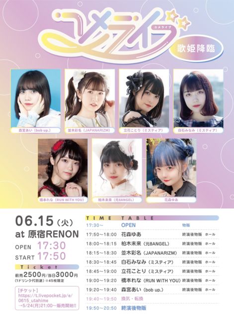 ¡Ö¥æ¥á¥é¥¤¥Ö¡Á²Îɱ¹ßÎסÁ¡× ¢£²ñ¾ì ¸¶½ÉRENON ¢£»þ´Ö OPEN17:30/START17:50 ¢£ÎÁ¶â Á°Çä¤ê2500±ß/ÅöÆü3000±ß(1¥É¥ê¥ó¥¯ÂåÊÌÅÓ) ¢¨45Ëç¸ÂÄê ¢£¥Á¥±¥Ã¥È https://t.livepocket.jp/e/0615_utahime ¢ª5/24(·î)21:00¡ÁÈÎÇ䳫»Ï!!