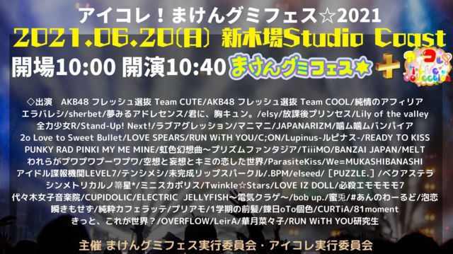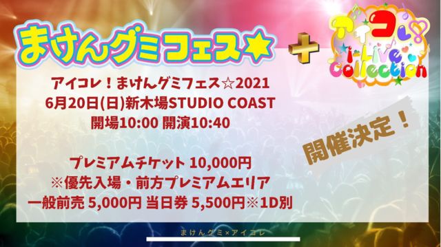 ¡Ö¥¢¥¤¥³¥ì¡ª¤Þ¤±¤ó¥°¥ß¥Õ¥§¥¹¡ù2021¡× ¢£ÆüÄø¡¡6/20(Æü) ¢£²ñ¾ì¡¡¿·ÌÚ¾ìUSEN STUDIO COAST ¢£»þ´Ö¡¡³«¾ì10:00 / ³«±é10:40 ¢£ÎÁ¶â¡¡Á°Çä\5,000 ÅöÆü·ô\5,500(³Æ1DÊÌ) https://t.livepocket.jp/e/mgfes0620 ÆÃŵ¡¡±¿±Ä¤È¤¸¤ã¤ó¸¢ ¾¡¤Á¢ª½¸¹ç¼Ì¥á ¤¢¤¤¤³¢ª¼Ì¥á·ôor¥é¥ó¥Á¥§¥ É餱¢ª¥é¥ó¥Á¥§¥