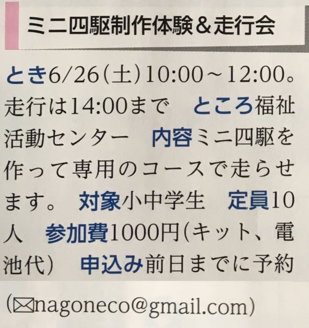 ¤Þ¤ó±äËÉ»ßÅù½ÅÅÀÁ¼ÃÖ¤Ëȼ¤¤¡¢»þû³«ºÅÆü¤È¤Ê¤ê¤Þ¤¹¡£ ³«ºÅ¾ì½ê :²£ÉÍ»ÔΩϷ¾¾Ãæ³Ø¹» ¥³¡¼¥È¿ô¡¡£´ÌÌ ¡¡Ê罸¿Í¿ô¡¡16̾ Ãó¼Ö¾ì ¹»Æâ¤ËÃó¼Ö²Äǽ¤Ç¤¹¤¬£³Âæ¤Þ¤Ç¤ÎÀ©¸Â¤¬¤¢¤ê¤Þ¤¹¤Î¤ÇÀèÃå¤È¤·¤Þ¤¹¡£ ¢¨Ï©¾åÃó¼Ö¤Ï¶áÎÙ¤«¤é¥¯¥ì¡¼¥à¤¬Æþ¤ê¤Þ¤¹¤Î¤Ç¤ª¼­¤á²¼¤µ¤¤¡£ ¡¡»²²ÃɽÌÀ»þ¤Ë¼Ö¤Ç¤ÎÍè¾ì¤Î»ÝÏ¢Íí´ê¤¤¤Þ¤¹¡£ ³«ºÅ»þ´Ö 18¡§00³«»Ï¡¡¡¡20:00´°Á´Å±¼ý »²²Ã»ñ³Ê ¡¦Ãæ³ØÀ¸°Ê¾å¡ÊÊݸî¼ÔƱȼ¤ÎÃæ³ØÀ¸°Ê²¼¤ÏÁêÃ̲¼¤µ¤¤¡Ë ¡¦´ðÁÃÂǤÁ¤¬½Ï¤ë»ö ¢¨¥²¡¼¥à¤Ø¤Î»²²Ã¤ò¤ªÃǤꤹ¤ë»ö¤¬¤¢¤ê¤Þ¤¹¡£ ¡¡Í½¤á¤´Î»¾µ¤¯¤À¤µ¤¤¡£ ¢¨åºÎï¤ÊÂÎ