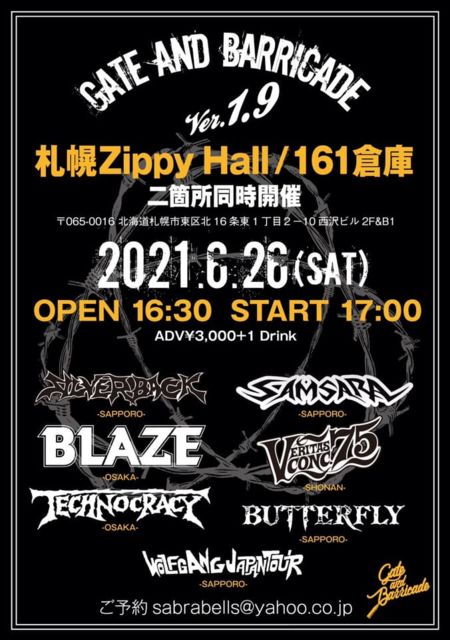 GATE AND BARRICADE Ver1.9 2021.6.26(ÅÚ) »¥ËÚZippy Hall /161ÁÒ¸Ë Æó²Õ½êƱ»þ³«ºÅ »¥ËÚ»ÔÅì¶èËÌ16¾òÅì1ÃúÌÜ£²¡Ý10À¾Âô¥Ó¥ë2F&B1 SILVERBACK SAMSARA BUTTERFLY wolfgang japantour BLAZE TECHNOCRACY VERITAS CONC.75 OPEN16:30/START 17:00 ADV.\3000¡Ü1Drink ºÇ¹â¤Î°ìÆü¤òÌ󫤷¤Þ¤¹¡ª À§È󤪽¸¤Þ¤ê¤¯¤À¤µ¤¤¡ª ¥Á¥±¥Ã¥ÈͽÌó¤Ï³Æ¥Ð¥ó¥ÉËô¤Ï sabrabells@yahoo.co.jp¤Þ¤Ç