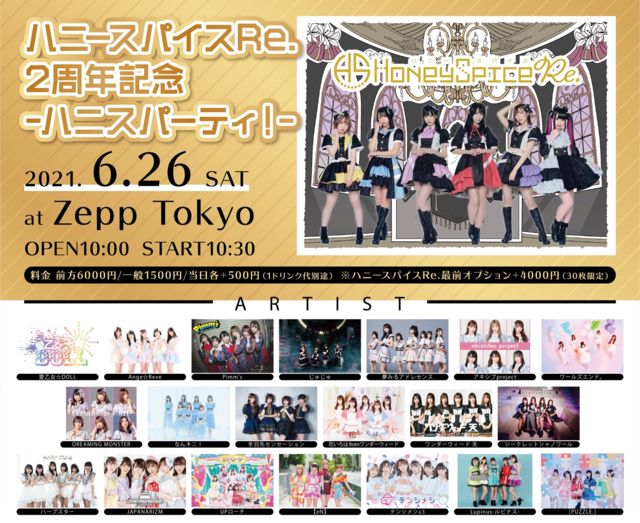 ¡Ö¥Ï¥Ë¡¼¥¹¥Ñ¥¤¥¹Re.2¼þǯµÇ°Fes -¥Ï¥Ë¥¹¥Ñ¡¼¥Æ¥£¡ª-¡× ¢£²ñ¾ì Zepp Tokyo ¢£»þ´Ö OPEN10:00/START10:30 ¢£ÎÁ¶â Á°Êý6000±ß/°ìÈÌ1500±ß/ÅöÆü³Æ+500±ß(1¥É¥ê¥ó¥¯ÂåÊÌÅÓ) ¢£¥Á¥±¥Ã¥È¡¡https://t.livepocket.jp/e/0626zepp_hs ¢£½Ð±é ¥Ï¥Ë¡¼¥¹¥Ñ¥¤¥¹Re./°¦²µ½÷¡ùDOLL/Ange¡ùRave/Pimm's/¤¸¤å¤¸¤å/Ì´¤ß¤ë¥¢¥É¥ì¥»¥ó¥¹/ ¥¢¥¥·¥Öproject/DREAMING MONSTER/¤Ê¤ó¥¥Ë¡ª/ ¼ê±©À襻¥ó¥»¡¼¥·¥ç¥ó/²Ö¤¤¤í¤Ï from¥ï¥ó¥À¡¼¥¦¥£¡¼¥É/¥ï¥ó¥À¡¼¥¦¥£¡¼¥É Å·/ ¥·¡¼¥¯¥ì¥Ã¥È¥·¥ã¥Î¥ï¡¼¥ë/¥Ï¡¼¥×¥¹¥¿¡¼/JAPANARIZM/UP¥í¡¼¥Á/¡ÚeN¡Û/¥Æ¥ó¥·¥á¥·໒꒱ /L