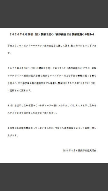 ¥¢¥¥Ð·Ï¥Õ¥ê¡¼¥Þ¥Ã¥È¡Ö³Ú»Ô³ÚºÂ£µ£µ¡×¤Ç¤¹¤¬¡¢¥³¥í¥ÊÂбþ¤Ëȼ¤¤¡¢ ²¼µ¤ÎÆüÄø¤ËºÆ±ä´ü¤È¤Ê¤ê¤Þ¤¹¡£ Æü¡¡»þ¡¡Ìµ´ü±ä´ü(³«ºÅ½àÈ÷¤Ï·Ñ³¤·¤Æ¤¤¤Þ¤¹¡£) ¾ì¡¡½ê¡¡¶¦ÏÂ¥Õ¥©¡¼¥é¥à(µì:Åìµþʸ¶ñ¶¦Ï²ñ´Û)¡¡2³¬ ¡¡¡¡¡¡¡¡http://www.kyouwa-kaikan.co.jp/ ¡¡¡¡¡¡¡¡nifty http://rakuichi.b.la9.jp/rakuichi/rakuichi.htm ¡¡¡¡¡¡¡¡³Ú»Ô55¿½¹þ½ñ¤â¹¹¿·¡£ ¡¡¡¡¡¡¡¡¥³¥í¥Ê¤¬¼ý¤Þ¤Ã¤¿ºÝ¤ËÀ¹¤ê¾å¤¬¤ê¤Þ¤·¤ç¤¦¡¼¥Î