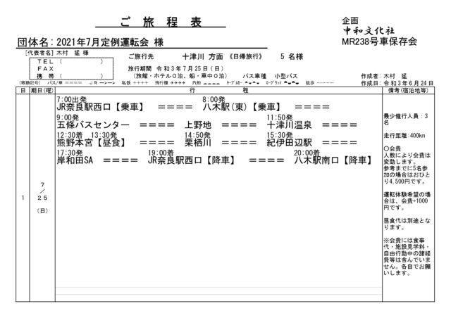 『JRバス 熊野線リバイバル』 JR(国鉄)バス 熊野線・熊野本宮→紀伊田辺駅 の路線をたどります。 【集合場所】 JR奈良駅西口 7:00出発 八木駅(東) 8:00出発 ※このほかの場所で乗降されたい方はご相談ください。ただし会費は同額です。 【解散】 JR奈良駅西口 19:00着予定 大和八木駅南口 20:00着予定 ※交通状況により予定通り運行できないことがあります。ご了承ください。 【昼食】 本宮大社前周辺で各自自由食でお願いします。 【参加費用】 参考までに5名参加の場合、一人4,500円です。 諸費用の人数割