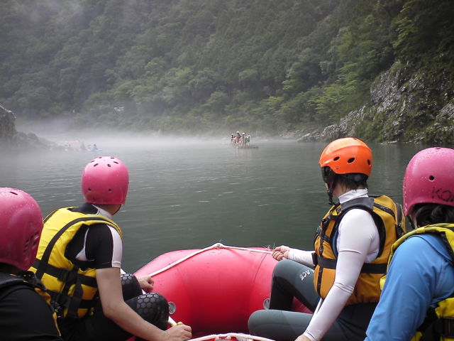 紀伊半島の秘境、瀞峡、その上流部北山川へのラフティングツアーです。 瀞峡筏下りと一緒に下ります。 初めての人大歓迎、一人参加大歓迎!グループでも! 水が綺麗で気持ちいいツアーです。 ウェア、安全用品はレンタルがあるので、装備を持っていなくても、安心して下れます。 朝6:30に大阪メトロ新金岡駅集合、10:30から下りだし、途中の河原でお昼ご飯を食べます。 ツアー参加費用¥2,500円、 ウェア(ヘルメット、ウェットスーツ、ライフジャケット、パドル)等レンタルなら+¥1,500円(つまり、何もなしでの参加の場合4,000円になりま