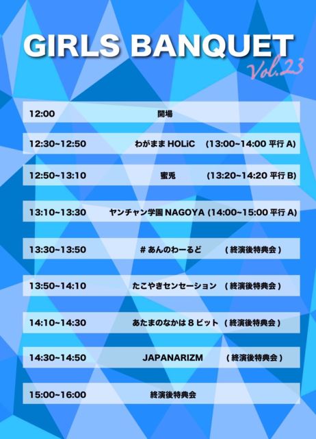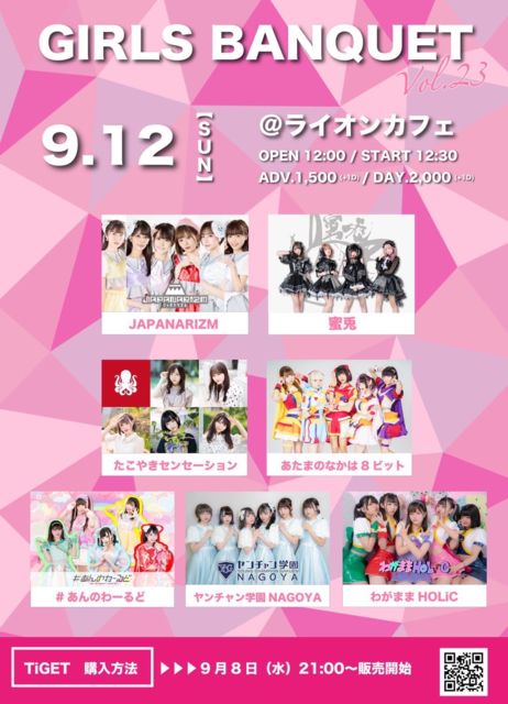 ¢£ÆüÄø¡¡9/12(Æü) ¢£²ñ¾ì¡¡Éú¸«¥é¥¤¥ª¥ó¥«¥Õ¥§ ¢£ÎÁ¶â¡¡Á°Çä1,500±ß/ÅöÆü2,000±ß(+1D) ¡ ¡ØGIRLS BANQUETvol.23¡Ù https://tiget.net/events/146397 ¢¨9/8 21»þ¡ÁȯÇä ¢¡Ø¥µ¥Þ¥¥å¥ó¸åÌëº×SP¡ª¡ª¡Ù https://tiget.net/events/146398 ¢¨9/8 22»þ¡ÁȯÇä