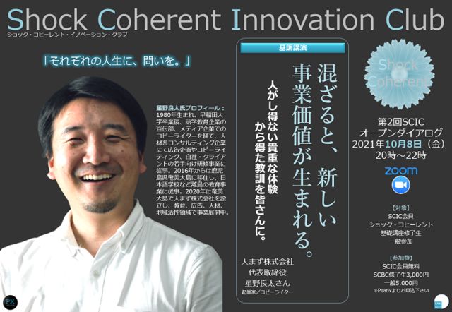 Âè2²ó¡ÖShock Coherent Innovation Club¡ÊSCIC¡Ë¥ª¡¼¥×¥ó¡¦¥À¥¤¥¢¥í¥°¡× ¡Öº®¤¶¤ë¤È¡¢¿·¤·¤¤»ö¶È²ÁÃͤ¬À¸¤Þ¤ì¤ë¡£¡× ¹Ö±é¼Ô¡§À±ÌîÎÉÂÀ»á ¡Ì2021ǯ10·î8Æü¡Ê¶â¡Ë20»þ¡Á¡Í https://scic20211008.peatix.com/view https://www.facebook.com/events/231154362199342 ¢£Æü»þ¡§2021ǯ10·î8Æü¡Ê¶â¡Ë20»þ¡Á22»þ ¢£Zoom¥ª¥ó¥é¥¤¥ó¡§URL¤Ï¡¢Åö¥Ú¡¼¥¸¤Î¿½¹þ¼Ô¤Ë¼«Æ°Á÷¿®¤µ¤ì¤Þ¤¹ ¢£Âè2²ó¹Ö»Õ¡§À±ÌîÎÉÂÀ»á ¡Öº®¤¶¤ë¤È¡¢¿·¤·¤¤»ö¶È²ÁÃͤ¬À¸¤Þ¤ì¤ë¡£¡× ¥«¥á¥é¥Þ¥ó¡¢Æ°²è¥Ç¥£¥ì¥¯¥¿¡¼¡¢¥«¥¦¥ó¥»¥é¡¼¡¢¥³¥Ô¡¼¥é¥¤¥¿¡¼¡¢ÀëÅÁÉô¡¢¸¦½¤¹Ö»Õ¡¢¿Íºà¥³¥ó¥µ¥ë¡¢¥ª¥¦