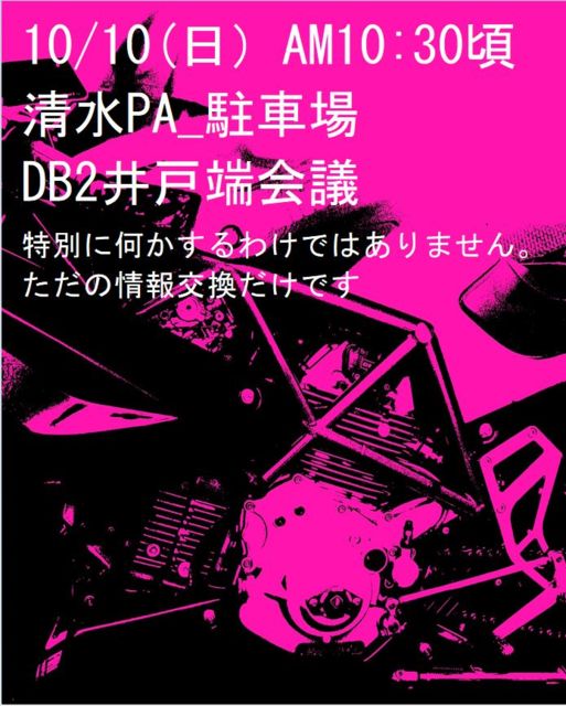 ºòǯ¤â´ë²èÅݤì¤Ë½ª¤ï¤Ã¤¿¤Ë¤â¤«¤«¤ï¤é¤º¡¢º£Ç¯¤â¡¢¤·¤«¤â°ì½µ´Ö¸å¤È¤¤¤¦ÌµÃã¤Ê´ë²è¤Ç¤¹¤¬¡¦¡¦¡¦¡£ Æü»þ¡§10/10¡ÊÆü¡Ë10¡§30º¢¤«¤é13¡§00º¢¤Þ¤Ç¡Ê¤«¤Ê¤êÂ绨ÇÄ¡Ë ¾ì½ê¡§À¶¿åPA¤Î³°¤«¤éÆþ¤ì¤ëÃó¼Ö¾ì¡¡¡ÊÃí°Õ¡§¹â®¤Î¾å¤ê²¼¤ê¤Ç¤Ï¤Ê¤¤¤Ç¤¹¡Ë ÆâÍÆ¡§¤¿¤À¤ÎDB2¤Î¾ðÊó¸ò´¹¤Ç¤¹¡£ÆÃ¤Ë¤Ê¤Ë¤«¤¢¤ë¤ï¤±¤Ç¤Ï¤Ê¤¤¤Ç¤¹¡£ ¤½¤Î¾¡§¡úÁ°Æü¤ÎÅ·µ¤Í½Êó¤Ç¹ß¿å³ÎΨ30¡ó°Ê¾å¤Ê¤éÃæ»ß ¡¡¡¡¡¡¡¡¡ú¤³¤Î¾ì¤Ç»²²Ã´õ˾¤¬Ìµ¤±¤ì¤ÐÃæ»ß¤È¤¤¤¦¤³¤È¤Ë¤µ¤»¤Æ¤¤¤¿¤À¤¤Þ¤¹¡£ ¡¡¡¡¡¡¡¡¢¥10/11¡Ê·î¡Ë¤Ï¤ªµÙ¤ß¤Ç¤Ï¤Ê¤¤¤Ç¤¹¤«¤é¤´Ãí°Õ¤ò¡ª ¥³¥í¥Ê¤Ëȼ¤¦À©¸Â¤â²ò½ü¤µ¤ì¡¢¥Ó¥â¡¼¥¿
