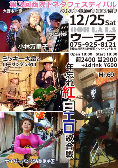 年末の恒例行事となってまいりました 西院下ネタフェスティバル―年忘れ紅白エロ歌合戦ですが、 今年は何とクリスマスの晩に開催される運びと相成りました。 その上土曜日でもあり、あな目出たし、あな嬉し、いや穴嬉し。 全身の穴という穴が発情しまくる聖夜にして性夜。 オ〇コブレイクスルーにチ〇コがブースターで狂喜乱舞でして、 もっともっと頂戴ってなサタデーナイト大フィーバー! 欲しがりますよ、負けてても!! オミクロンなど物ともせずに私のアソコはオメ黒ん!!!