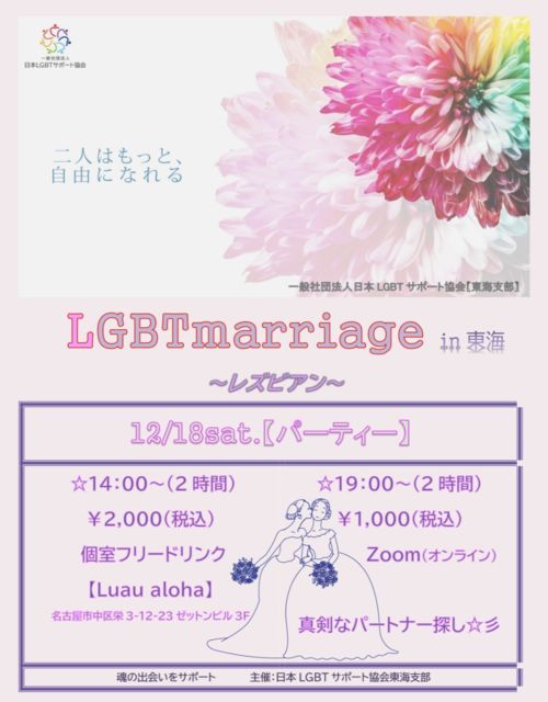°ìÈ̼ÒÃÄË¡¿ÍÆüËÜLGBT¥µ¥Ý¡¼¥È¶¨²ñ🏳Å쳤»ÙÉô¤Ë¤è¤ë¥Ñ¡¼¥Æ¥£¡¼³«ºÅ LGBT🏳¥Þ¥ê¥Ã¥¸¥Ñ¡¼¥Æ¥£¡¼(¿¿·õ¤Ê¥Ñ¡¼¥È¥Ê¡¼Ãµ¤·) 12¡¿18(ÅÚ) ¥ê¥¢¥ë¥Ñ¡¼¥Æ¥£¡¼(14:00)¤Èzoom(19:00)¤ÎÆóËÜΩ¤Æ¡£ º£²ó¤Ï¥ì¥º¥Ó¥¢¥ó¤µ¤ó(30Âå40ÂåÂоÝ) ¤ªÌ䤤¹ç¤ï¤» ainavi(¥¢¥¤¥Ê¥Ó) 0120-944-994 ainavi_g@yahoo.co.jp