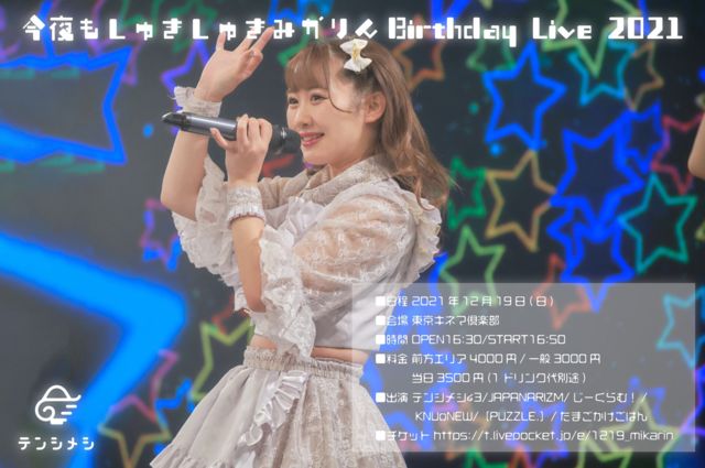 ¡Öº£Ìë¤â¤·¤å¤¤·¤å¤¤ß¤«¤ê¤ó¡ÁBirthday Live 2021¡Á¡× ¢£ÆüÄø 2021/12/19(Æü) ¢£²ñ¾ì Åìµþ¥¥Í¥Þ¶æ³ÚÉô ¢£»þ´Ö OPEN16:30/START16:50 ¢£ÎÁ¶â Á°Êý¥¨¥ê¥¢4000±ß/°ìÈÌ3000±ß/ÅöÆü3500±ß(1¥É¥ê¥ó¥¯ÂåÊÌÅÓ) ¢£¥Á¥±¥Ã¥È https://t.livepocket.jp/e/1219_mikarin ¢ª12/9(ÌÚ)21:00¡ÁÈÎÇ䳫»Ï!!
