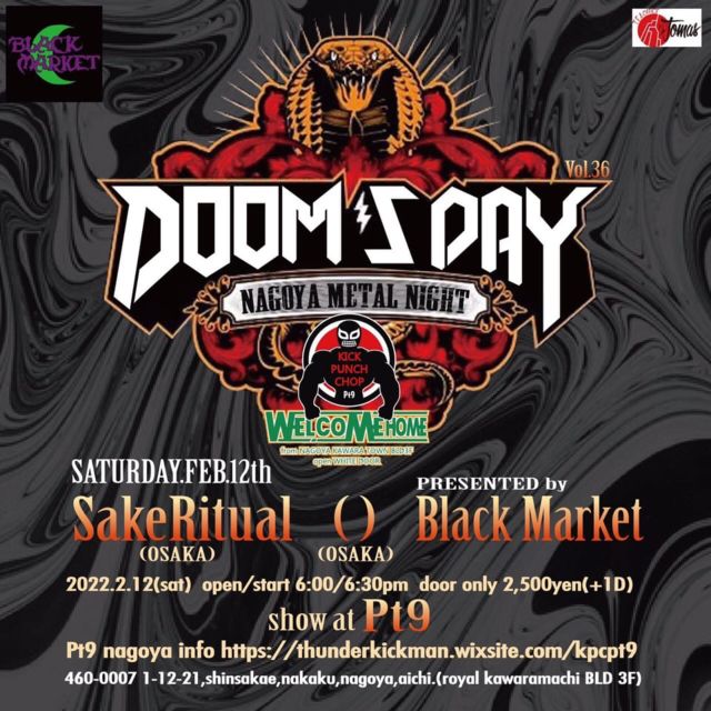 2022.2.12(Sat)@̾¸Å²°¿·±ÉPt9 ¡ÈDOOMSDAY Vol.36¡É SakeRitual. ( ) Black Market OPEN 18:00 / START 18:30 DOOR only \2,500 (+1D)