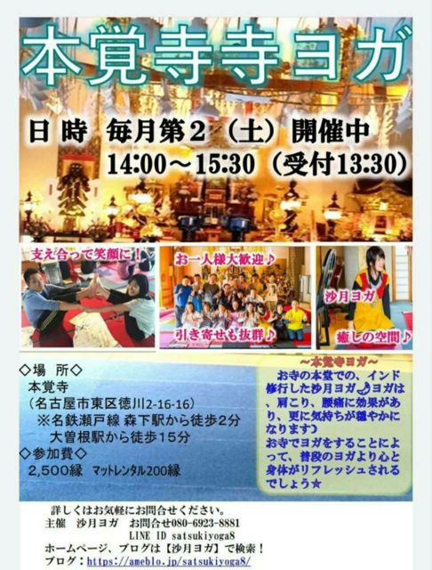 »û¥è¥¬(Ëܳлû)¡¡¡¡ 2·î12Æü(ÅÚ) ¤ª»û¤ÎËÜÆ²¤Ç¥è¥¬¤ò¤·¤Þ¤¹¡¡¢ö ¥è¥¬¤Ï¡¢¸ª¤³¤ê¡¢¹øÄË¡¢¼«Ê¬¤ò¸«¤Ä¤á¤ë¤³¤È¤¬¤Ç¤¡¢µ¤»ý¤Á¤¬Ë¤«¤ÇÍ¥¤·¤¤µ¤»ý¤Á¤Ë¤Ê¤ê¤Þ¤¹¡£ ¹¹¤Ë¡¢¤ª»û¤Ç¥è¥¬¤ò¤¹¤ë¤³¤È¤ÇÉáÃʤΥ襬¤è¤ê¤â¾ô²½¤ÎÎϤ¬¶¯¤¯¤Ê¤ê¤Þ¤¹¡£ ¿·Ç¯¡¢Ê©Íͤ«¤é¤ª»û¤«¤é¥Ñ¥ï¡¼¤ò¤¤¤¿¤À¤¤Ê¤¬¤é¤Û¤Ã¤È¤·¤¿»þ´Ö¤ò²á¤´¤·¤Þ¤·¤ç¤¦¢ö ¡¡ ¡Ú»þ´Ö¡Û¼õÉÕ13»þȾ¤«¤é ³«»Ï14»þ¡¡¡¡½ªÎ»15»þ30ʬ¤Þ¤Ç¡¡¡¡ ½ªÎ»¸å¡¢¥è¥¬¤Î¼ÁÌäÅù¤¢¤ëÊý¤Ï¼õÉÕ¤Þ¤¹¢ö ¡Ú»²²ÃÈñ¡Û2500±ï¡Ì¥Þ¥Ã¥È¥ì¥ó¥¿¥ëÎÁ£²£°£°±ï ¡¡¡¡²¼¤Ï¤¿¤¿¤ß¤Ç¤¹¤Î¤Ç¥Ð¥¹¥¿¥ª¥ë¤Ç¤â²Äǽ¤Ç¤¹¡£ ¡¡¡¡¥Þ¥Ã¥È¤¬¤Ê¤¤Êý¤Ï