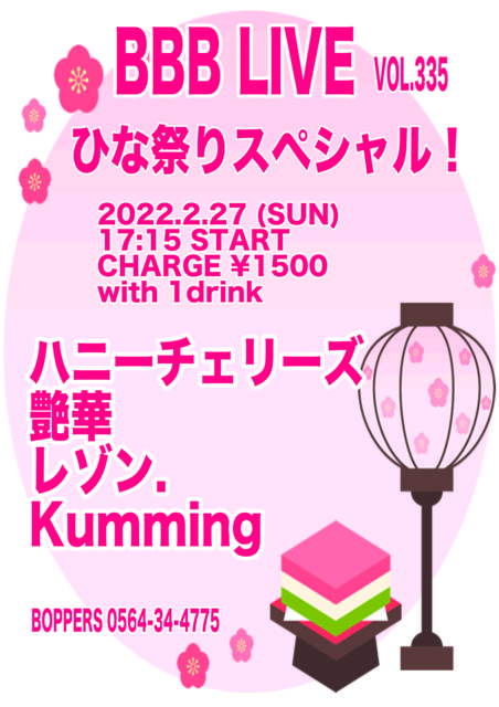 2022.2.27 (SUN) 17:15 START CHARGE \1500 with 1drink ¥Ï¥Ë¡¼¥Á¥§¥ê¡¼¥º ±ð²Ú ¥ì¥¾¥ó. Kumming