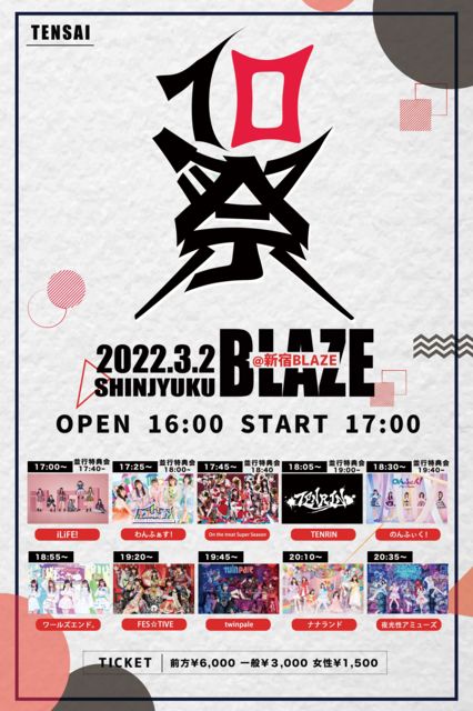 ¡Ö10º×¡× ÆüÄø¡§03/02(¿å) ³«¾ì16:00 / ³«±é17:00 ²ñ¾ì¡§¿·½ÉBLAZE ÎÁ¶â¡§Á°Êý6,000/°ìÈÌ3,000/½÷À1,500(³Æ1DÊÌ) ¥Á¥±¥Ã¥È¡§https://eplus.jp/sf/sys/comingsoon.html