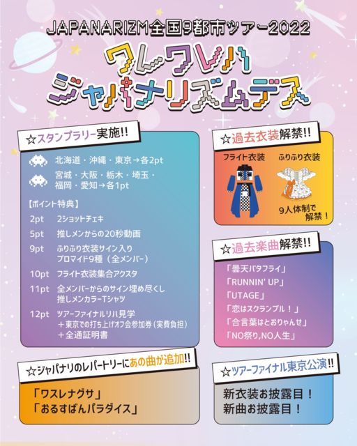 ランチオフ会 https://www.japanarizm.com/Schedule/2022.04.18 ■場所 国際通り近辺の飲食店 ■参加料 6000円(ランチ、ドリンク1杯、推しメンとの写メ券1枚込) ■時間 11:00-12:30予定 ■内容 メンバーと一緒に琉球ランチ♪ ■チェキ撮影(希望者のみ) 1枚 2,000円 ■予約 4/11予約開始予定