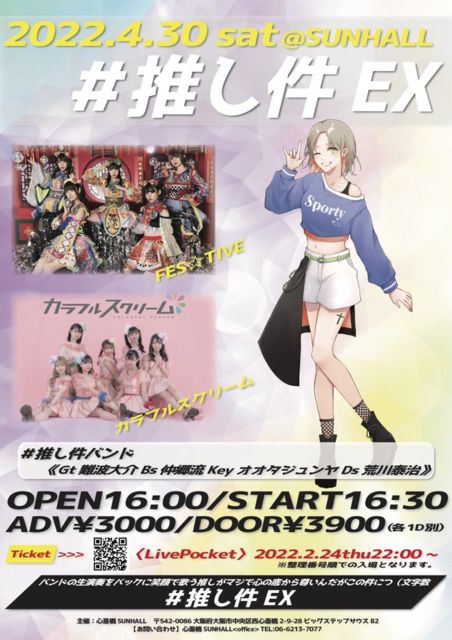 ¡Ö#¿ä¤··ï EX¡× ÆüÄø¡§04/30(ÅÚ) ³«¾ì16:00 / ³«±é16:30 ²ñ¾ì¡§¿´ºØ¶¶SUNHALL ÎÁ¶â¡§Á°Çä3,000±ß / ÅöÆü3,900±ß (DÊÌ) ¥Á¥±¥Ã¥È¡§https://ntrecords.com/profile-kanon/¡¡¢¨02/24(ÌÚ)22»þ¡Á ½Ð±é¡§FES¡ùTIVE / ¥«¥é¥Õ¥ë¥¹¥¯¥ê¡¼¥à
