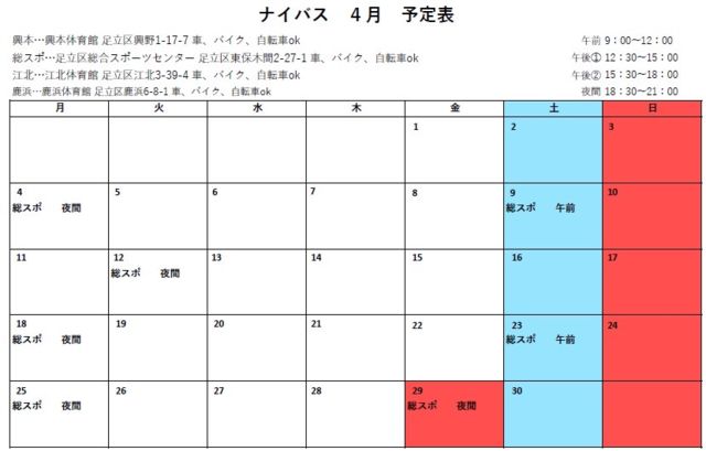 ¤ªÀ¤ÏäˤʤäƤª¤ê¤Þ¤¹¡£ ¥Ê¥¤¥Ð¥¹¤Î¤Þ¤µ¤¤Ç¤¹¡£ 4·î9Æü(ÅÚ) 9:00¡Á12:00 ¾ì½ê ÂΩ¶èÁí¹ç¥¹¥Ý¡¼¥Ä¥»¥ó¥¿¡¼ ½»½ê ÅìµþÅÔÂΩ¶èÅìÊÝÌÚ´Ö£²ÃúÌÜ£²£·¡Ý£± HP https://www.city.adachi.tokyo.jp/sports/shisetsu/koen/038.html ¼Ö10Âæ°Ê¾å¡¢¼«Å¾¼Ö¡¢¥Ð¥¤¥¯ok Ê罸¿Í¿ô5¡Á10Ì¾ÄøÅ٠¾¤Ç¤âÊ罸¤·¤Æ¤Þ¤¹¡£ »²²ÃÈñ500±ß ¥ì¥Ù¥ë¤ÏÃæµéÄøÅÙ¡£ ¥²¡¼¥à¤ò¤·¤Þ¤¹¤Î¤Ç Çò¤ÈÇò°Ê³°¤ÎÉþ¤ò»ý»²¤ª´ê¤¤¤·¤Þ¤¹¡£ ¿³È½¤È¥¿¥¤¥Þ¡¼¤Î¶¨ÎϤª´ê¤¤¤·¤Þ¤¹¡£ ʬ¤«¤é¤Ê¤¤¤³¤È¤¬¤¢¤ì¤Ð¤Ê¤ó¤Ç¤â¼ÁÌ䤷¤Æ²¼¤µ¤¤(^^) ¥Ê¥¤¥Ð¥¹¤ÎYouTube¥Á¥ã¥ó¥Í¥ë