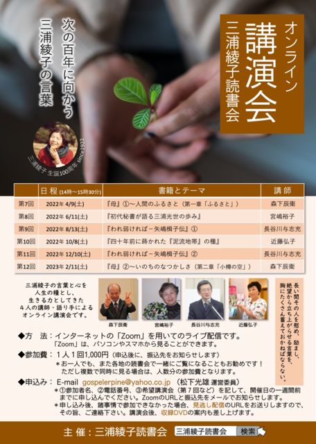 ¡Ú¥ª¥ó¥é¥¤¥ó¹Ö±é²ñ¤Î¤´°ÆÆâ¡Û 021ǯ4·î¤«¤é³«»Ï¤·¤¿»°±º°½»ÒÆÉ½ñ²ñ¤Î¡Ö¥ª¥ó¥é¥¤¥ó¹Ö±é²ñ¡×¤Î2ǯÌÜ¡ÊÂè7²ó¡ÁÂè12²ó¡Ë¤Î¤´°ÆÆâ¤òº¹¤·¾å¤²¤Þ¤¹¡£ 2022ǯÅÙ¤â°ú¤Â³¤³Ö·î¡Ê°ì¤«·î¤ª¤¡Ë¤Î¥Ú¡¼¥¹¤Ç6²ó¤ÎÇÛ¿®Í½Äê¤Ç¤¹¡£ ¡¡¡¡¡¡¡¡¡¡»°±º°½»Ò¤Î¸ÀÍդȿ´¤ò¡¡ ¡¡¡¡¡¡¡¡¡¡¿ÍÀ¸¤ÎÎȤȤ·¡¢ ¡¡¡¡¡¡¡¡¡¡À¸¤¤ëÎϤȤ·¤Æ¤¤¿ ¡¡¡¡¡¡¡¡¡¡4¿Í¤Î¹Ö»Õ¡¦¸ì¤ê¼ê¤Ë¤è¤ë¡¡ ¡¡¡¡¡¡¡¡¡¡¥ª¥ó¥é¥¤¥ó¹Ö±é²ñ¤Ç¤¹¡£ ½¸²ñ¤¬³«¤¤Ë¤¯¤¤»þ¤Ç¤â¡¢¤´¼«Â𤫤鵤·Ú¤Ë»²²Ã¤Ç¤¤Þ¤¹¡£ ¥³¥í¥Ê¤¬¼ý¤Þ¤Ã¤Æ½¸¤Þ¤ì¤ë¤è¤¦¤Ë¤Ê¤Ã¤¿¤é¡¢ÆÉ½ñ²ñ¤ÎÃç´Ö¤È½¸¤Þ¤Ã¤Æ»²²Ã¤¹¤ë¤Î¤â¤¤¤¤¤Ç¤¹¤Í¡£