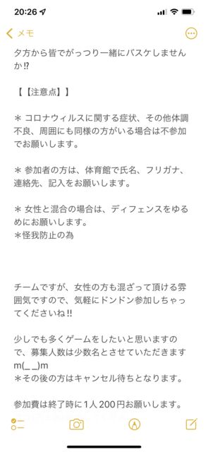 Ê罸Âоݡ§¥Ð¥¹¥±·Ð¸³¼Ô¤ÎÊý ¥Á¡¼¥à¤Ç¤Î»²²Ã¤Ç¤â´¿·ÞÃפ·¤Þ¤¹¡£ ¾ì½ê¡§ÀîÅçÃæ³Ø¹» »ý»²Êª¡§¥Ü¡¼¥ë¡¢¥ê¥Ð¡¼¥·¥Ö¥ë¡¢°û¤ßʪ »²²ÃÈñ¡§1¿Í500±ß 1»þ´Ö²ø²æÌµ¤¤¤Î¤Ê¤¤¤è¤¦¤Ë¥¢¥Ã¥×¤·¤Æ¤«¤é2»þ´Ö¥²¡¼¥à¤ò¤¹¤ëͽÄê¤Ç¤¹¡£ ¡ú±þÊçÊýË¡ ¡ÀÊÌ ¢Ç¯Î𠣥Х¹¥±Îò ¤¥Ö¥é¥ó¥¯¤ÎÍ̵ ¾åµ4ÅÀ¤ò¤´µºÜĺ¤¡¢¥³¥á¥ó¥È¤ò¤ª´ê¤¤Ãפ·¤Þ¤¹¡£ ¥²¡¼¥à¤ò¤¹¤ëºÝ¤Î¥Á¡¼¥àʬ¤±¤Î»²¹Í¤Ë¤µ¤»¤ÆÄº¤¤Þ¤¹¡£ ¢¨10̾¤ËËþ¤¿¤Ê¤¤¾ì¹ç¡¢¸Ä¿ÍÏ£¤ä¥ß¥Ë¥²¡¼¥à¤Ç¤â¹½¤ï¤Ê¤¤¤«¤É¤¦¤«¤â¥³¥á¥ó¥È失¤ë¤È½õ¤«¤ê¤Þ¤¹ ¢¨ÅöÆü¤Î16:00º¢¤Ë»²²Ã¿Í¿ô¤ò³Îǧ¤·¡¢10̾°Ê¾å½¸¤Þ¤é¤Ê