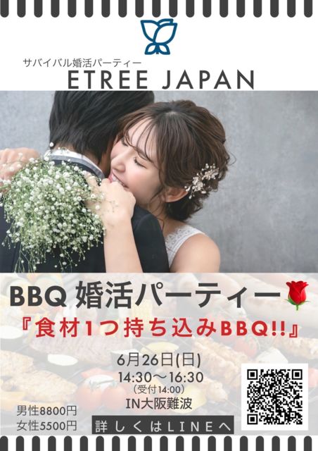大阪難波で婚活BBQを開催いたします!! 1対1のプロフィール交換からグループでのBBQという流れなので婚活パーティーが初めての方も参加しやすくなっております よくある質問ですがお一人様の参加がほとんどなので安心してお越し下さい 気になる方は詳細送らせて頂きますのでメッセージ下さい