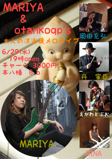 ¥Ó¡¼¥Õ¥é¥Ã¥È¤Î´ÇÈÄ̼Mariya(Gt.)¤È¥×¥íSaxÁռԤβ¬ÅĽ¼¹°»áΨ¤¤¤ë¡Öotankoqp's¡×¤¬¥³¥é¥Ü¤·¤Æ¤Î¥é¥¤¥Ö¤Ç¤¹¡£ ¥É¥é¥à¤Ï¤ªÆëÀ÷¤ß¤Î¥Ù¥Æ¥é¥ó¥×¥íðǫ¿Ã»á¡¢¥Ù¡¼¥¹¤Ï½é»²²Ã¤Î¤¨¤¬¤ï¤È¤Ö¤ª»á¡¢¥¡¼¥Ü¡¼¥É¤Ï¥Ó¡¼¥Õ¥é¥Ã¥È¥¹¥¿¥Ã¥Õ¤ÎRina¤¬Ì³¤á¤Þ¤¹¡£ ¶ÊÌܤÏÍγڤβû¥á¥í¤¬Ãæ¿´¤È¤Î¤³¤È¡£ ¤ª³Ú¤·¤ß¤Ë¡ª OPEN:19:00 Charge:¡ï3,000 ¢¨¤´Í½Ìó¤Ï¤ªÅÅÏᢤ⤷¤¯¤Ïmotoyawatabflat@yahoo.co.jp¤Þ¤Ç¡£