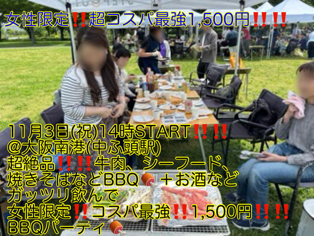 2025年11月03日 (関西地区BBQ史上最安値!!女性限定!!!!コスパ最強1,500円!!!!)