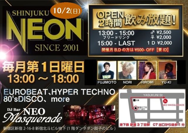 ¢£¿·½É£Î£Å£Ï£Î¡÷¿·½É¥Í¥ª¥Þ¥¹¥«¥ì¡¼¥É 13:00¡Á18:00 ¡¡13:00¡Á15:00¡¡ŽÌިްŽÄŽÞŽØŽÝޏ ¡¡¡¡¡é2,500 ¡ê2,000 ¡¡15:00¡Á¡¡£±£Ä¡¡ ¡¡¡¡¡é¡ê¤È¤â 2,000¡¡ ¡¡¢¨10·îÃÂÀ¸Æü¤ÎÊý¤Ï 500-OFF(Í×ID) Â繥ɾ¡¦¥ª¡¼¥×¥ó2»þ´Ö°û¤ßÊüÂê¤ÎÂè°ìÆüÍ˥ѥ饤¥Ù¤È¤¤¤¨¤Ð¡¢¿·½ÉNEON¡ª ¿·µì¥æ¡¼¥í¥Ó¡¼¥È¡¢¥Æ¥¯¥Î¡¢80's DISCO ¤ò¥ê¥¯¥¨¥¹¥ÈÃæ¿´¤Ë20ʬ´Ö³Ö¤ÇOnAir¡ª ÅöÆü¤Ï¥ê¥¯¥¨¥¹¥ÈÍÑ»æ¤ò½àÈ÷¤·¤Æ¤¤¤Þ¤¹¡£¤´µÆþ¸åDJ¥Ö¡¼¥¹¤Þ¤Ç¤É¤¦¤¾¡£ 9·î¤Ë³¤¤¤Æ°û¤ßÊüÂê¤Î¥Ó¡¼¥ë¤Ï1ÇÕÌÜ À¸¥Ó¡¼¥ë¡¢2ÇÕÌÜ ´Ì¥Ó¡¼¥ë¡Ê¸ÂÄêËÜ¿ô¡Ë¤Ç¤¹¡£ ¡¡¡Ú¤ªµÒÍͤؤª´ê¤¤¡Û ¡ü¥Þ¥¹¥¯Ãå