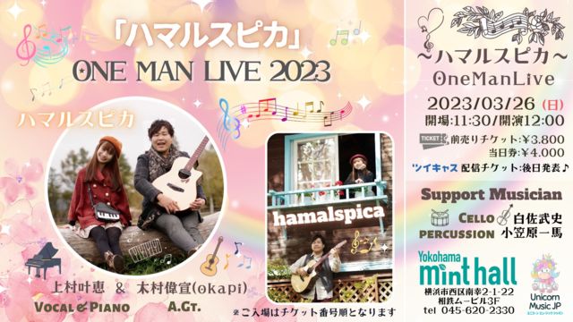 2023/03/26 (Æü)²£Éͥߥó¥È¥Û¡¼¥ë ¥Ï¥Þ¥ë¥¹¥Ô¥«¥ï¥ó¥Þ¥ó¥é¥¤¥Ö open:11:30 / start: 12:00 Æþ¾ìÎÁ: Á°Çä¤ê3,800±ß¡¢ÅöÆü4,000±ß¡ÊÊÌ1drink¡Ë ½Ð±é: Agt ÌÚ¼°ÎÀë¡Êokapi¡Ë Pf ¾å¼³ð·Ã ¥µ¥Ý¡¼¥È Vc Çòº´Éð»Ë Per ¾®³Þ¸¶°ìÇÏ ¢¨ÅöÆü¤Ï¥Á¥±¥Ã¥ÈÈÖ¹æ½ç¤Ç¤Î¤´Æþ¾ì¤È¤Ê¤ê¤Þ¤¹¡£ ¥Á¥±¥Ã¥È¤Î¤´Í½Ìó¤Ï 12/11 16:00¤è¤ê http://uemura-kanae.com/liveinfo/ ¤¿¤¯¤µ¤ó¤ÎÊý¤¬¤´Æþ¾ì¤¤¤¿¤À¤±¤ë²ñ¾ì¤Ê¤Î¤Ç¡¢ ¤¼¤Ò¤ªÍ§Ã£¤ò¤ªÍ¶¤¤¤Î¾å ¤ª±Û¤·¤¤¤¿¤À¤±¤ë¤È¹¬¤¤¤Ç¤¹ ²£Éͥߥó¥È¥Û¡¼¥ë¡¡¥¢¥¯¥»¥¹ https://mintha