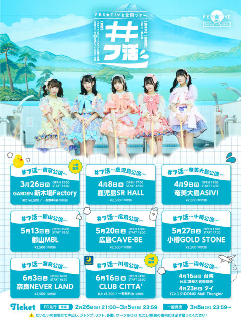 ¡ÚÅìµþ¡ÛFES¡ùTIVE ¡ÖÁ´¹ñ¥Ä¥¢¡¼2023 #¥Õ³è ¡× ÆüÄø¡§03/26(Æü) ³«¾ì15:00 / ³«±é16:00 ²ñ¾ì¡§GARDEN¿·ÌÚ¾ìFACTORY ÎÁ¶â¡§Á°Êý6,500±ß / °ìÈÌ̵ÎÁ (DÊÌ) ¥Á¥±¥Ã¥È¡§FCÀè¹Ô¼õÉÕ´ü´Ö:2/26(Æü)21:00¡Á3/5(Æü)23:59 °ìÈÌ3/8,23:59¡Á¡¡¢«????