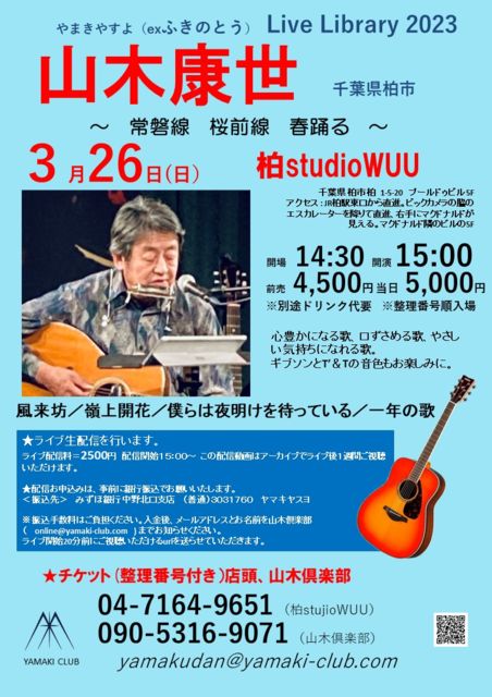 ¡Ö»³ÌÚ¹¯À¤¡¡Live Library 2023¡× ¡Á¾ïÈØÀþ¡¡ºùÁ°Àþ¡¡½ÕÍÙ¤ë¡Á ²ñ¾ì¡áÇðstudioWUU https://www.wuu.co.jp/ ÀéÍÕ¸© Çð»Ô Çð¡¡1-5-20¡¡¥×¡¼¥ë¥É¥¥¥Ó¥ë 5F ÅÅÏà : 04-7164-9651 ¥¢¥¯¥»¥¹ : JRÇð±ØÅì¸ý¤«¤éľ¿Ê¡£¥Ó¥Ã¥¯¥«¥á¥é¤ÎÏÆ¤Î¥¨¥¹¥«¥ì¡¼¥¿¡¼¤ò¹ß¤ê¤ÆÄ¾¿Ê¡¢±¦¼ê¤Ë¥Þ¥¯¥É¥Ê¥ë¥É¤¬¸«¤¨¤ë¡£¥Þ¥¯¥É¥Ê¥ë¥ÉÎ٤Υӥë¤Î5F ³«¾ì£±£´¡§£³£°¡¡³«±é£±£µ¡§£°£°¡¡ Á°Ç䣴£µ£°£°±ß¡¡ÅöÆü£µ£°£°£°±ß¡¡ ÊÌÅÓ¡¡¥É¥ê¥ó¥¯ÂåÍס¡¢¨À°ÍýÈÖ¹æÉÕ¤Æþ¾ì¤Ç¤¹ ¡ú¥²¥¹¥È¡á³ÑÅĽç¡Ê¥®¥¿¡¼¡Ë ¡ú¥é¥¤¥ÖÀ¸ÇÛ¿®¤¢¤ê¡¡ÇÛ¿®ÎÁ2500±ß ͽÌó¡¦Ìä¹ç¤» Çðstu£äioWUU £°£´