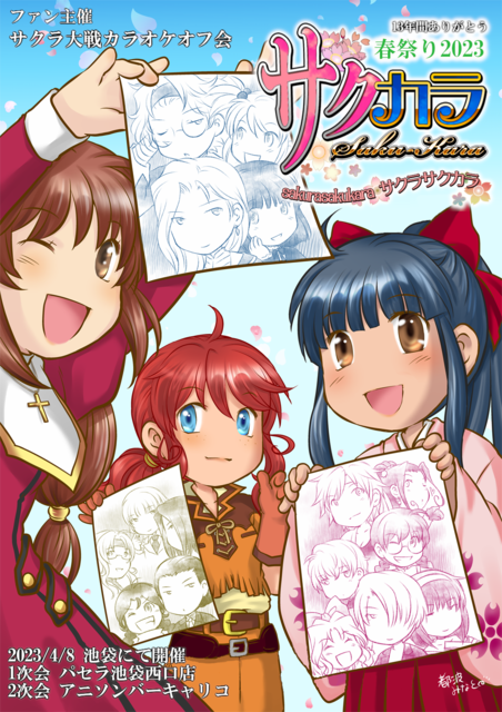 【ご挨拶】 あっぷると申します。 はじめましての方々、どうか宜しくお願い致します。 m(_ _)m お馴染みの方々、またお会いしましたね♪ 今回も色々手伝って頂けますでしょうか? 頼りにしてます。 【幹事からご挨拶】 2009年から大佐さんと始めた池袋サクカラは皆様のご協力ご声援により、13年も続ける事ができました ありがとうございました! この度、桜咲く春の季節にあっぷる幹事ラストのサクカラを開催致します 初参加大歓迎です! 多くのサクラ大戦、新サクラ大戦、さくら革命、奏組、芽組ファンと交流の輪を広げましょう