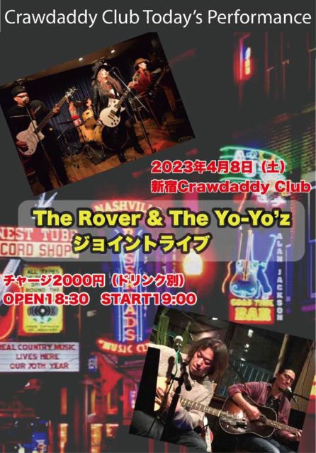 4/8 本日のライブ The Rover & The Yo-Yo'z LIVE OPEN 18:30 START 19:00 CHARGE 2000円 よろしくお願いいたします!!