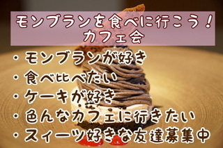 〜飯塚の友達作り@九州カフェ会〜 飯塚の皆さん、こんにちは! 飯塚で友達作りをしたい方のための交流会、 『飯塚deモンブランを食べに行こう!カフェ会』を開催します♪ 主宰者はゆいさんです! 地元のカフェ会に参加したいと思っていた方 引っ越してきたばかりで友達がほしい方 平日休みの方 カフェ会ってなに?という方も ぷらっとお立寄りください モンブランを食べに行こう!カフェ会とは・・・ おいしいモンブランを食べに行こう!という会です。 あまり緊張しないイベントに参加したい
