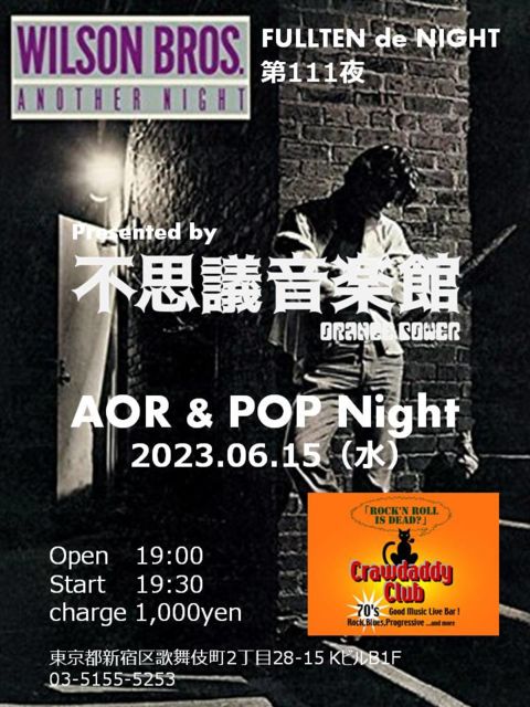 6/15 本日はFullTen de Night 111夜 不思議音楽館「大将軍のA.O.R Night」 OPEN 19:00 START 19:30 CHARGE 1000円 ぜひお立ち寄りください〜!!