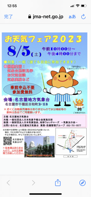 µÞ¤Ç¤¹¤¬••• ̾¸Å²°ÃÏÊýµ¤¾ÝÂæ¸«³Ø¤ÎÂǤÁ¹ç¤ï¤»¤ò¤·¤è¤¦¤ÈÏ¢Íí¤·¤¿½ê¡¢1ǯ¤Ë1Å٤Υ¤¥Ù¥ó¥È¤¬8/5¤Ë¤¢¤ë¤Î¤Ç¤¤¤é¤·¤Æ²¼¤µ¤¤¡¢»ÜÀ߸«³Ø¤â½ÐÍè¤Þ¤¹¤È¸À¤ï¤ì¤¿¤Î¤Ç¡¢¹Ô¤³¤¦¤È»×¤¤¤Þ¤¹¡£ https://www.jma-net.go.jp/nagoya/shosai/app/otenki/otenki.html ¡µ¤¾ÝÂæ»ÜÀ߸«³Ø ¢¤ªÅ·µ¤ÁêÃÌ £µ¤¾Ý¼Â¸³ etc 11»þ30ʬ¤ËËÜ»³±Ø¤ÇÂÔ¤Á¹ç¤ï¤»¤·¤Æ¥é¥ó¥Á¤·¤Æ¤«¤é¹Ô¤Ã¤Æ¤âÎɤ¤¤Ç¤¹¡£»²²Ã¼Ô¤Ë¹ç¤ï¤»¤Þ¤¹¡£