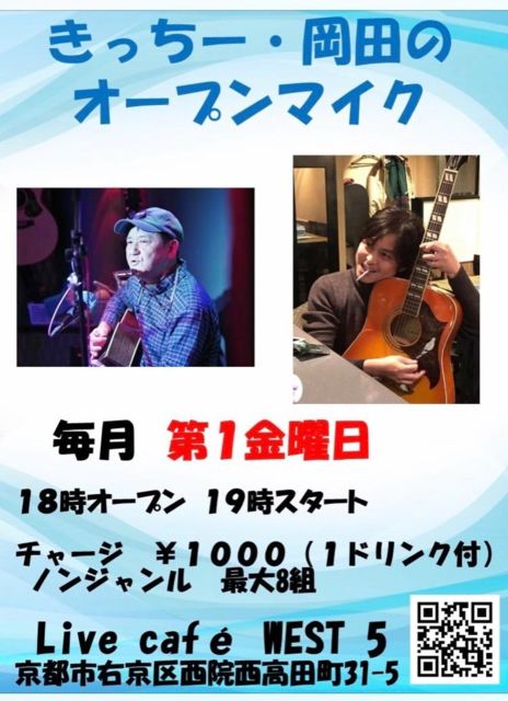 18時オープン 19時スタート チャージ1000円 Live cafe WEST 5 京都市右京区西院西高田町31-5 https://west5live.com/ #京都市 #西大路五条 #西院 #Live #Cafe