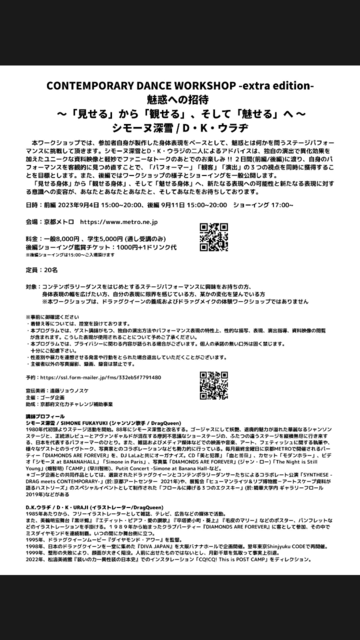 2023 09 04 /2023 09 11 @ METRO 合田企画 presents コンテンポラリーダンス ワークショップ 〜魅惑への招待〜 D K ウラヂ シモーヌ深雪