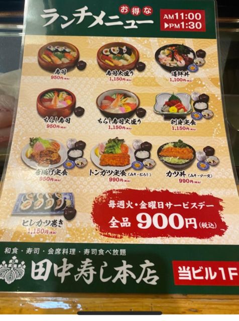 伏見の田中寿司は火曜日、金曜日がどんなランチでもそして大盛りでも全品900円になります。食べに行きませんか?