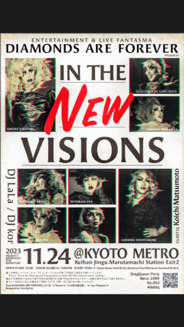 2023 11 24 frh @Kyoko METRO DIAMONDS ARE FOREVER presents In The New Visions DJ LaLa kor Koichi Matsumoto シモーヌ/フランソワ/アフリーダ/そよ風さん/ショコラ/カルミナ/キャンディス/ルドミラ 10:00〜 ¥2000